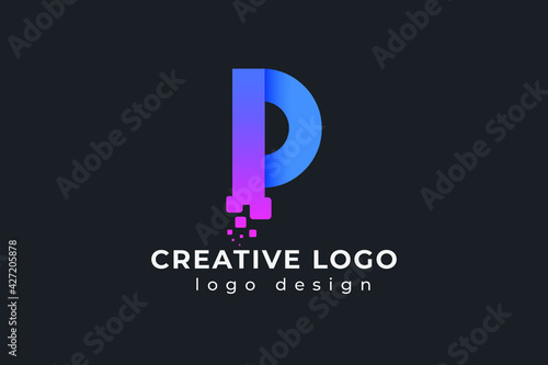 P Letter Design with Creative Dots Bubble and Blue Pink Colors Vector Illustration.