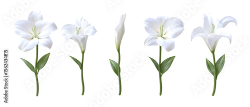 Pack Collection Elegant White Lilies Floral Arrangements Botanical Photography Natures Beauty set against transparent background