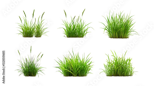 Pack Grass Set Against Transparent Background for Landscape Design, Eco-Friendly Branding, or Botanical Projects