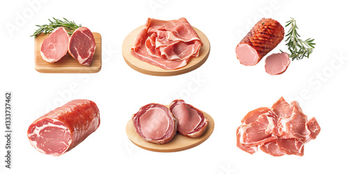 Pack Ham Set Against Transparent Background for Butcher Branding, Food Advertising, or Culinary Design Projects