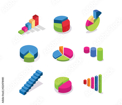 Pack of isometric charts isolated on white background