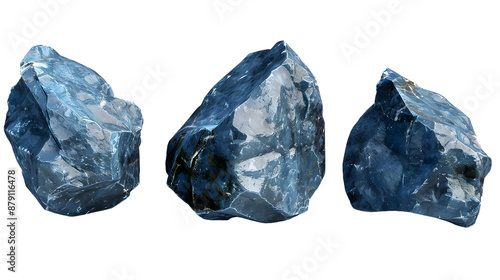 Pack of rough blue stones for geology and decoration Isolated on transparent background
