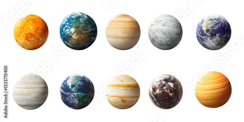 Pack Planet Set on Transparent Background for Astronomy, Science, and Space Designs