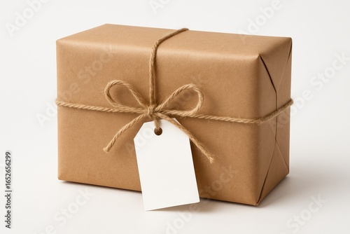 Package wrapped in brown paper and tied with string, with no label