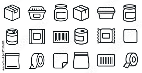 Packaging and container outline icons set – minimalist, storage, shipping symbols