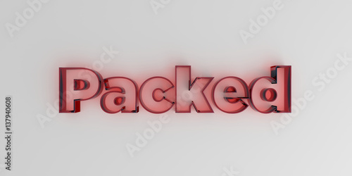 Packed - Red glass text on white background - 3D rendered royalty free stock image.