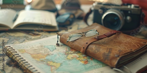 Packing list and travel guide, close view, organized trip planning, soft focus
