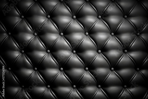 Padded black leather upholster pattern. Quilted leather texture with buttons. Tufted leather closeup