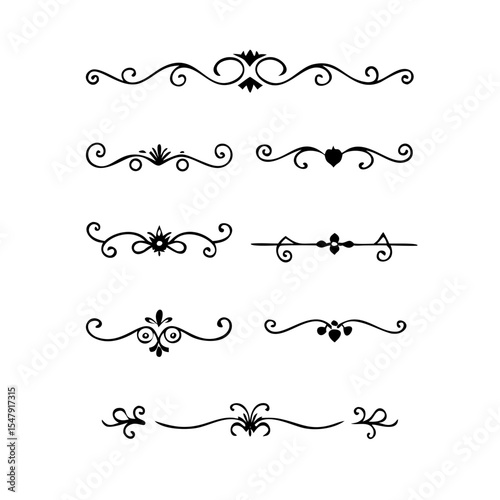 Page Divider And Design Elements. Set of Various Simple Black Divider Design, Assorted Divider Collection Template Vector. Collection of floral dividers elements mega decoration for Calligraphy.