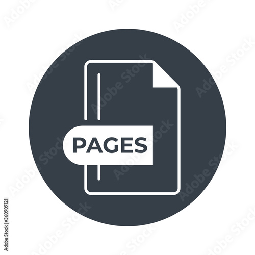 PAGES File Format Icon. PAGES extension filled icon.