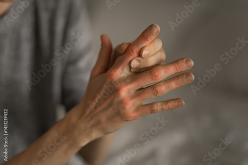 Pain in the palm of hand caused by bruising or injury, highlighted red