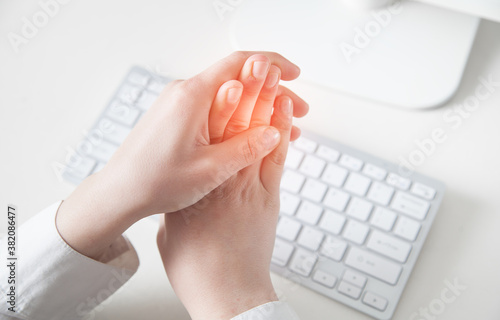 Pain on fingers. Work on computer. Office syndrome