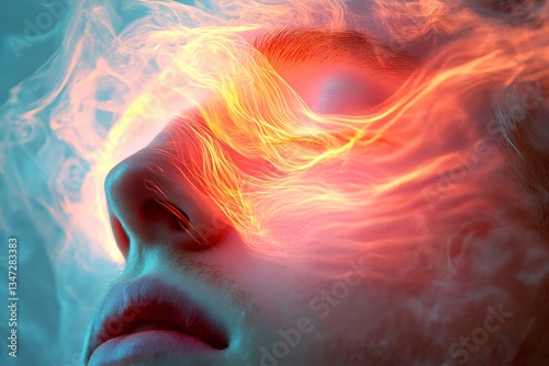 Painful experience. Pain of disorder - sinus pain: abstract image of human state. Metaphorical sinus pain emotions of a and suffering. Severe condition. Crying in pain. Body in distress.