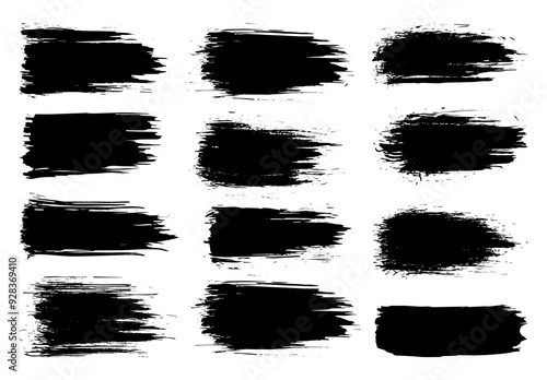 Paint brush. Black ink grunge brush strokes. paintbrush set. Grunge design elements. Painted ink stripes. Creative isolated spots. Ink smudge abstract shape stains and smear set