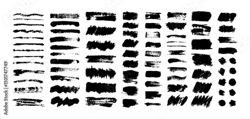 Paint brush stroke. Ink splatter, grunge line artistic hand drawn border brushes. Dirty overlay, watercolor scribble black splashes. Vector scratch smears isolated set