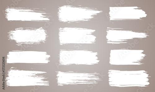 Paint brush. White ink grunge brush strokes. paintbrush set. Grunge design elements. Painted ink stripes. Creative isolated spots. Ink smudge abstract shape stains and smear set