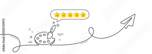 Paint palette line icon. Continuous line with share plane. Artist brush sign. Creative drawing art symbol. Five star rate review in speech bubble. Palette single line ribbon. Vector