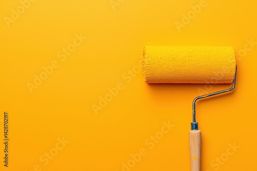 Paint roller creating vibrant yellow background with copy space