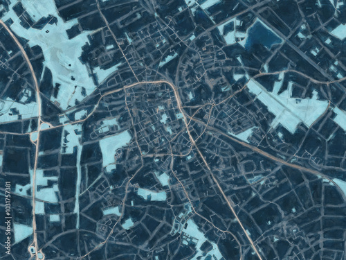 Painterly Style City Map of Viersen, Germany in a Blue Color Scheme.