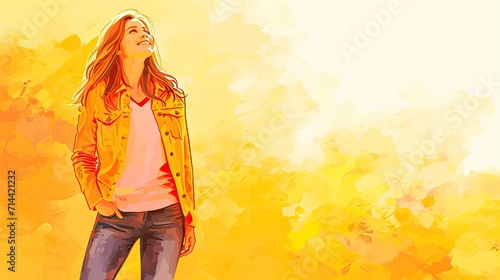Painting of Woman in Yellow Jacket Generative AI