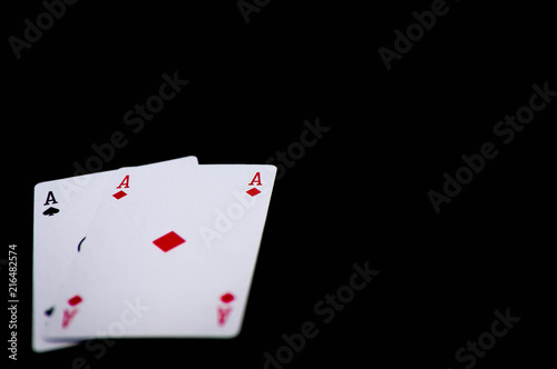 Pair of ases close up shot on dark background , space for text.