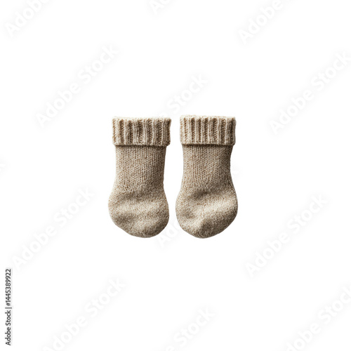 Pair of Beige Knit Baby Socks on Black Background