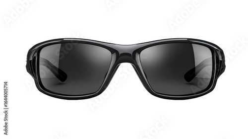 Pair of black wrap around sunglasses with dark lenses