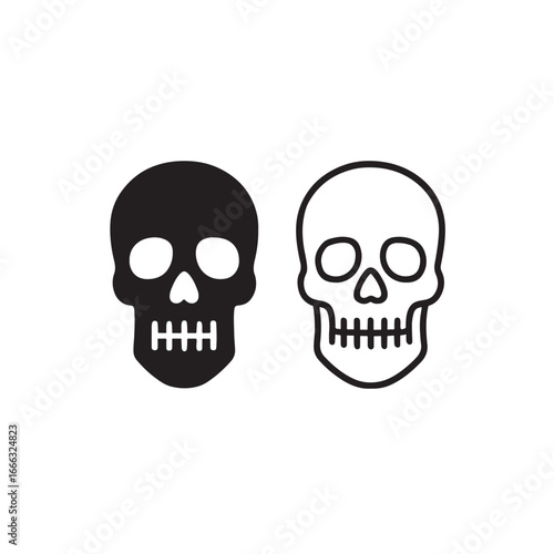 Pair of Skulls Black and Outline Vector