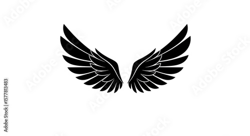 Pair of stylized black wings against a white background.