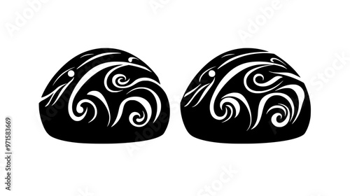 Pair of sweet rolls placed side by side with distinct swirled designs, vector illustration art