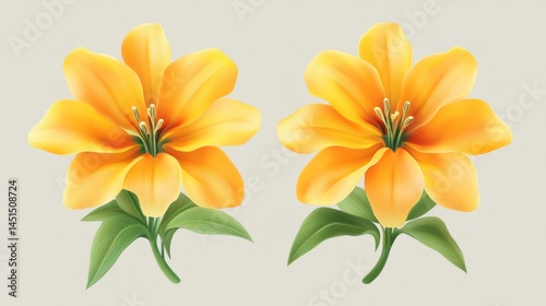 Pair of Vibrant Yellow Lilies: A Botanical Delight