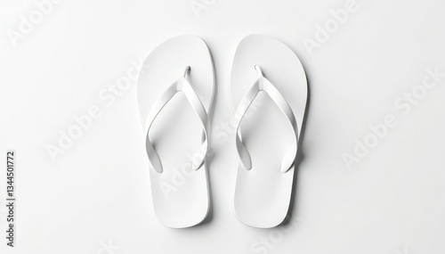Pair of white flip-flops, isolated, pure white backdrop, design, soles, footwear