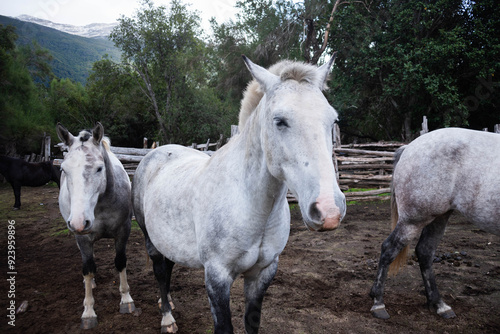 Paisajes de praderas en la Patagonia Argentina con increíbles valles en zona rural. Vacas, caballos y ovejas pastando se pueden apreciar.