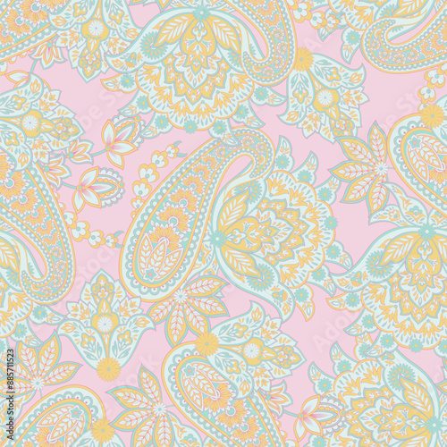 Paisley and ethnic flowers seamless vector pattern. floral vintage background