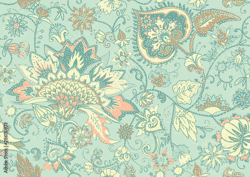 Paisley. Seamless Textile floral pattern with oriental paisley ornament.
