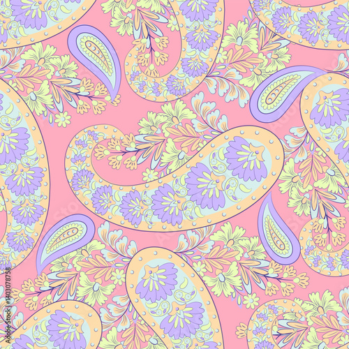 Paisley Seamless Vector Pattern. Indian floral motifs for fabric designs