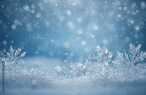 pale blue frosty background with softly glowing lights and delicate snowflakes
