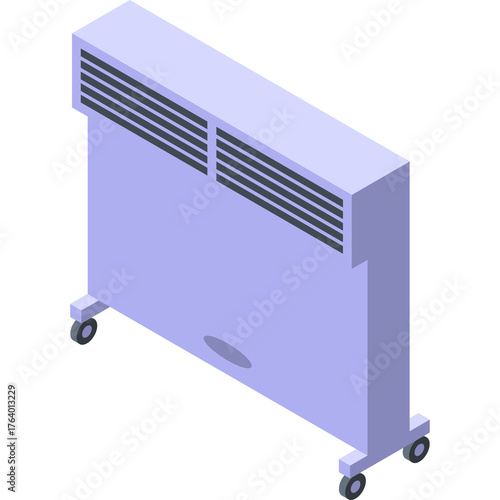 Pale Blue Portable Electric Heater with Wheels and Vents on a White Background