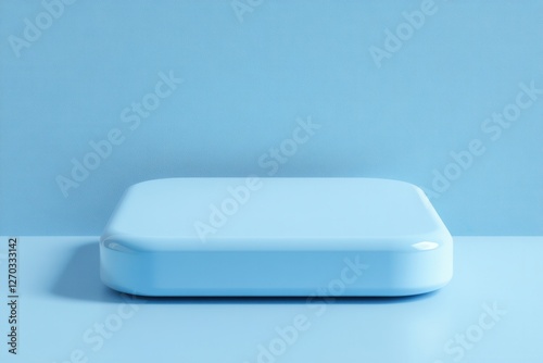 Pale blue square platform on matching background. Ideal for showcasing products or minimalist designs.