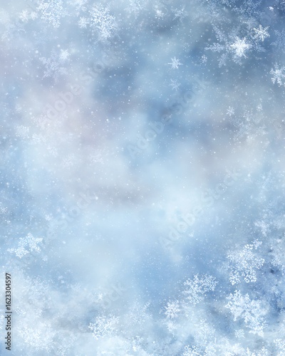Pale Blue Winter Snowflake Background with Bokeh Effect