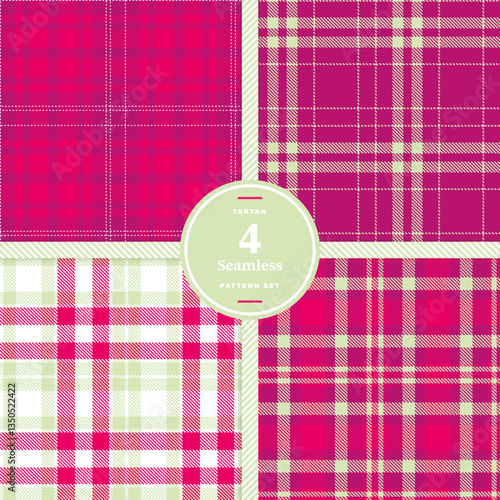 Pale Cream Seamless Tartan with Cherry Red accents Fabric Design Set of 4
