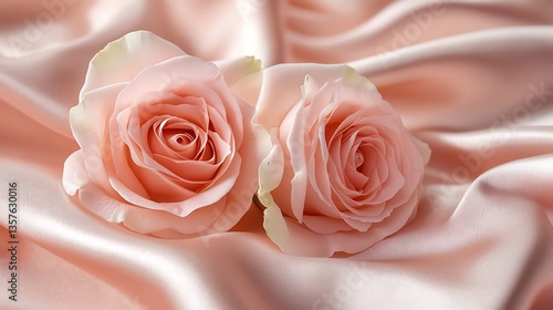 Pale Pink Roses on Silky Fabric, Two pale pink roses on a smooth, silky fabric background