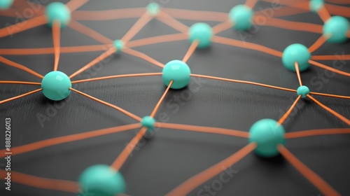 Pale turquoise dots connected by rust orange lines on a dark gray canvas, with a clear area for text in the upper center