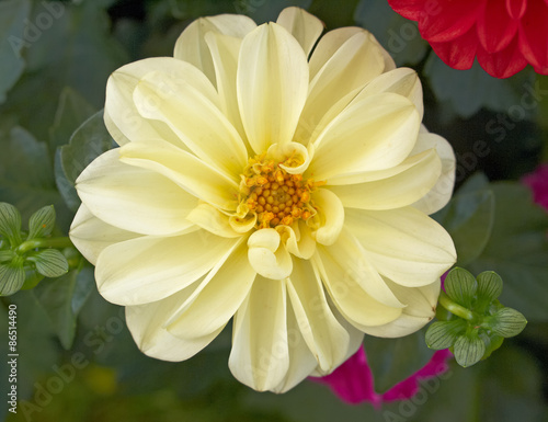 pale yellow Dahlia flower closeup in the garden