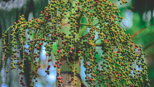 Palm fruits, native palm tree tree. Contrast of nature.