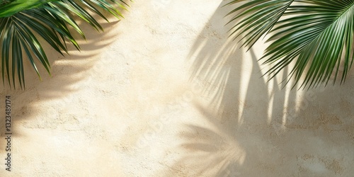 Palm Leaf Shadows on Textured Wall in Sunny Tropical Location