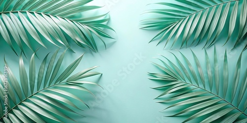Palm leaves on a teal colored background