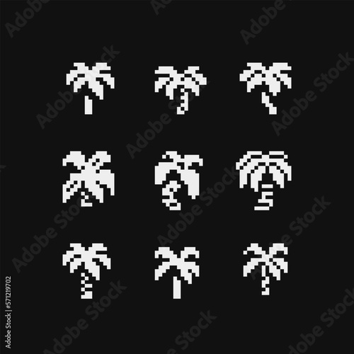 Palm pixel art icon set. Game assets. 1-bit sprite. Isolated abstract vector illustration. Element design for stickers, embroidery, mobile app.