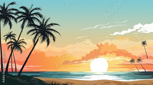 Palm tree at the sand beach, a beach, and palm trees, the sunset with the sands