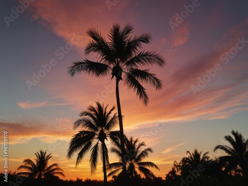 Palm Tree Silhouette Against a Colorful Sunset Sky